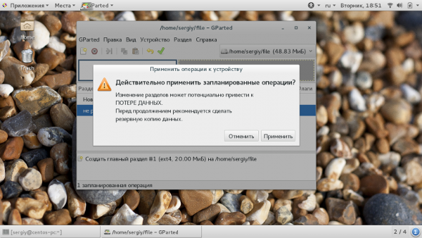 В завершение работы, выбрав раздел, пользователю останется кликнуть «Изменить или Переместить». Возникнет очередное запланированное задание, которое необходимо подтвердить, и GParted закончит необходимые действия. Как видно, достаточно проявить аккуратность и не торопиться — нужно просто выбрать целевой диск и раздел и разблокировать тот диск, с которым произойдут манипуляции.
